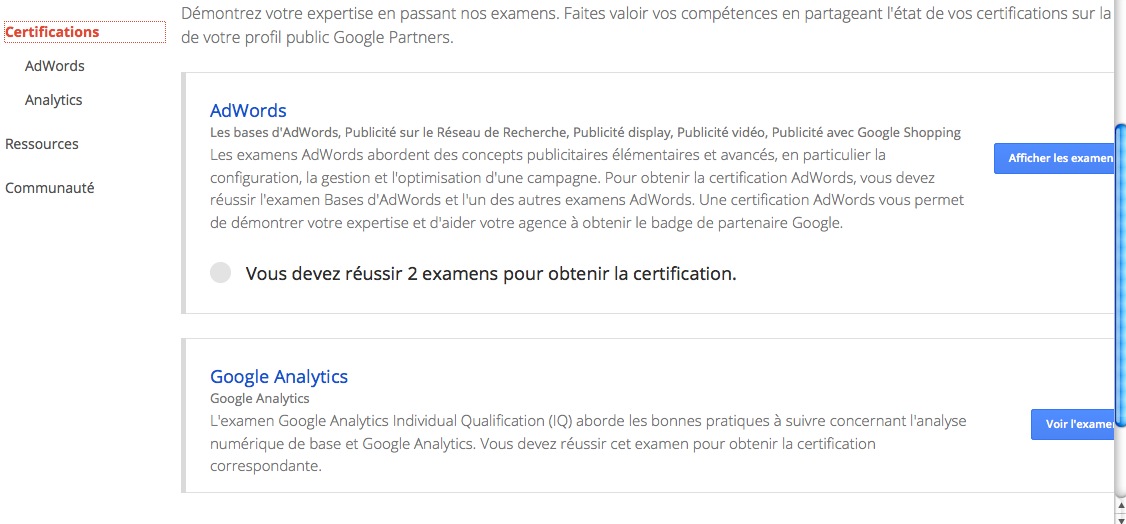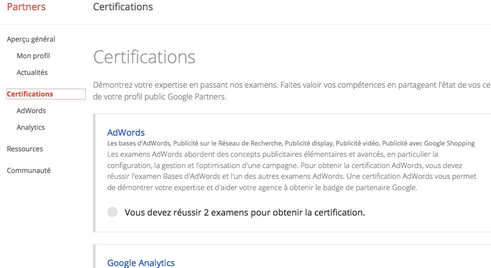 Cliquez alors sur le bouton « s’inscrire à Google Partners ».
